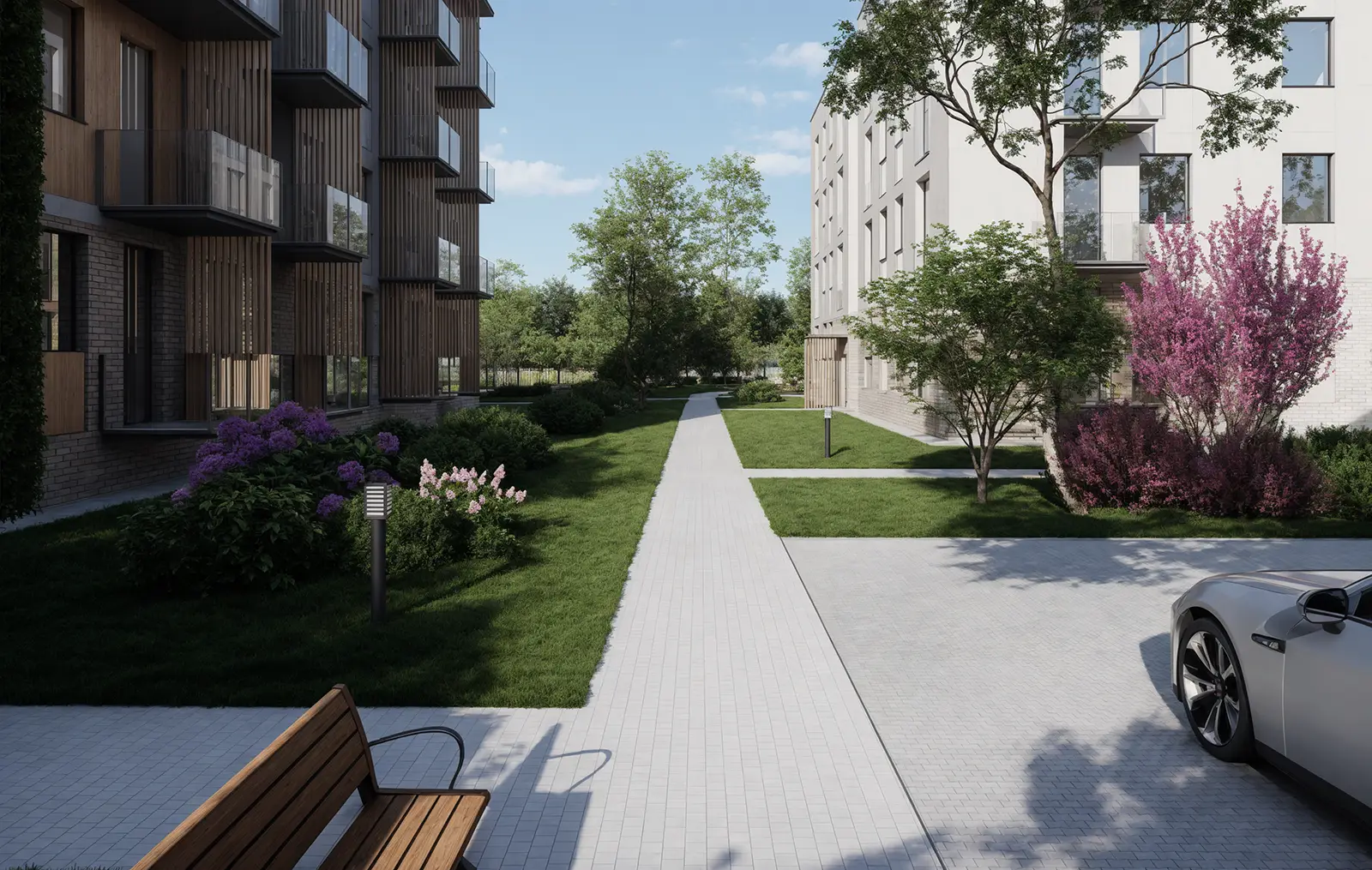 Tereny zielone zostały starannie zaprojektowane i zagospodarowane przez renomowaną firmę “StudioGreen”. Architekci krajobrazu zadbali o każdy detal, tworząc harmonijne i funkcjonalne przestrzenie, które sprzyjają integracji społeczności i zapewniają mieszkańcom możliwość aktywnego wypoczynku na świeżym powietrzu.